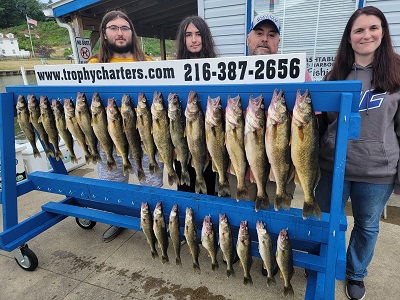 | So tomorrow is August already. Another fast month is about in the books. I would imagine these long runs that we’re making is going to go on for a while now. Nothing really new. These Walleyes follow the same patterns year after year. What we can look forward to is that usually when September rolls around they start steadily marching back southward reversing this crazy outbound march as the water temps start to lower. The same thing happens year after year. Hopefully we got our rough water over with for a while now and all we have to worry about is just the hot days as we enter the “Dog Days of Summer”! As if we haven’t really had enough 90 degree plus days this summer! Even with all the gusty strong south west winds that we’ve had these past two weeks, almost everyday these winds ushered in super charged hot air. What a bubble of heat most of this country has been locked in now for weeks. We’ll see how it all plays out going forward. So fishing is really good. River Marine where The Trophy is docked has built us two new fish racks And so I thought it would be only fitting to feature all fish rack shots for this weeks pictures! Enjoy! Capt. Walt Trophy Charters * These trips were not priced for this kind of fuel emergency that is facing us right now. Your generous tips will help us survive these tough times that lay ahead! THANK YOU! |