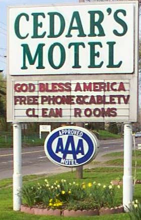 CEDAR’S MOTEL2015 West Prospect Rd. Ashtabula, Ohio 44004 (440)992-5406 Lynn & Marty Wetherholt E-Mail marty07@adelphia.net |