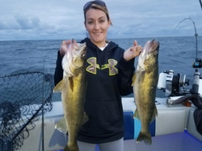 | Aboard “The Trophy” this past week we bounced back and fourth between the smaller Jr. Thundersticks and the larger full sized Storm Thundersticks in an attempt to cut back on all the shorts. Let me tell you, that strategy don’t work! Lol! The little guys still jump all over the bigger baits. I couldn’t see any difference myself. These smaller Walleye just have no fear! Makes me wonder for as many trillions that must be in the lake lakewide right now, how many of these smaller Walleye try to eat each other! Seriously! I’ve already posted pictures of larger Walleye that had smaller Walleye in their mouths. Where do they draw the line? I’ll bet it happens! Man what a mean world of survival it must be down there when the population of one species explodes like this and the fish all compete for food! |