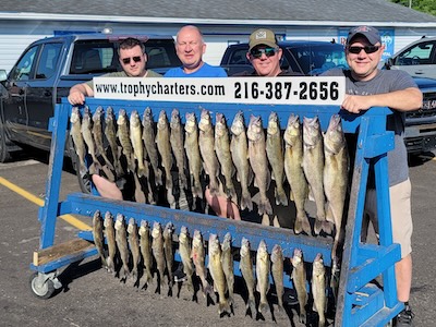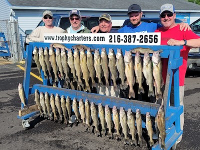 Great weather! Great friends! And great fishing! We are chugging along nicely here as we are about to put the month of June in the rear view mirror. The Walleye fishing out of the Port of Ashtabula just could not get any better. Everyday is like the movie Ground Hog Day for ourselves and all of the other charters here really. Boat limits are almost automatic for everybody. Day after day after day. I can’t believe that even I have had to reel some fish in! Lol! The fish are still hanging in there rather close to shore even though water temps have now surged to the mid 70’s. What a blessing for everyone. I’m sure we are still going to end up well offshore eventually like we do every year but for now the fish don’t seem to be in any big hurry to push northward. And I like it! |