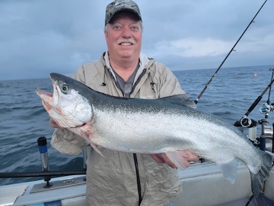 What we did find well offshore is where all the Steelhead Trout have been hiding all summer! After going nearly three months without even hooking a single one aboard The Trophy we are now tangling with one or two most everyday it seems like. Many as always have been getting off after a considerable fight but we still have managed to box a few beauties! There’s nothing like the scream of the drag on a Dipsy rod when one of these big boys hits! And like always when they start showing up we’ve already lost a handful of spoons to those creeps! Lol! But that’s OK I guess. As long as it’s only one or two a day that steal my stuff! It really gets everyone excited however and that’s all part of the fun of the fishing charter! |