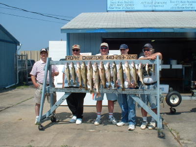 We’ve already run a handful of Walleye trips, and just like the past years, the early trips have provided some monster fish. Although the overall numbers could be better, the quality has been excellent. Each day we have caught at least one monster Walleye that went 30 inches or better! Best action has been to the west of Ashtabula harbor in water running from 45 to 60 feet. Most Walleye are being caught off of the boards using #40 Jet Divers and Stinger Spoons. Leads from 70 to 140 feet back have all caught us fish with the most consistent at around 90 feet. |