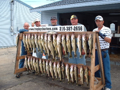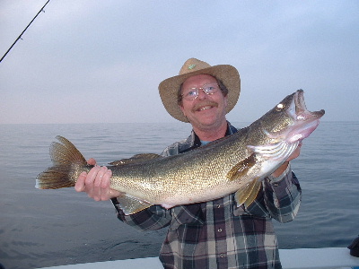 It is especially vital with this heat to get off the dock bright and early and that means you need to be loaded up and ready to roll no later then 5:30 a.m.if you have a trip booked with us. The fish are a good ways offshore now so there is a considerable amount of travel time. We want to arrive at the fishing grounds just as dawn is breaking so that we can cash in on the early morning heavy bite and try to be off the lake before the heat of the afternoon becomes unbearable. So far, almost all of my groups have been very good about showing up very early all bright eyed and ready to go fishing. That gets us out and fishing when the walleyes are biting like crazy and others are still waiting for their charters to show up! Thanks for helping me look good !! Capt. Walt |