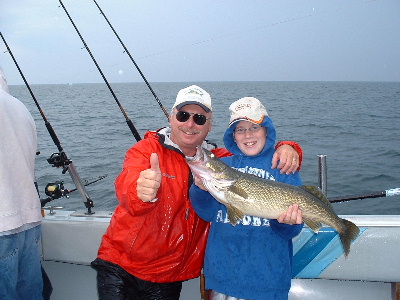 Aboard "The Trophy" we are relying heavily on the old Storm deep diving Jr. Thunderstick. This lure is identical in size and shape to the Lake Erie Smelt. When you hold each in hand, it's easy to see why the Walleyes are so easily fooled. Best colors for us as always seem to me the metallic colors with gold's and silvers seemingly the very best. Copper spoons on the riggers and divers are also doing very well. Everything is now set super deep for these hungry Walleyes and that means a lot of cranking but as I tell all my groups, "more winding and less whining |