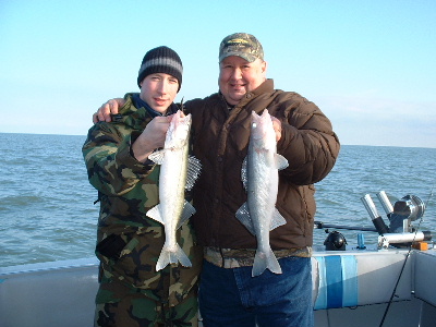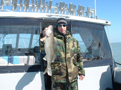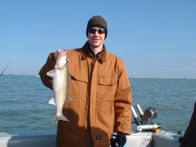 Sunday greeted us with calm seas but a very muddy lake. Surprisingly most everybody was catching fish. Not fast but not bad either. We started our day on the Toussaint Reef without so much as a touch. After about 45 minutes, I moved off the S.W. corner into 14 ft. of water and we started catching Walleyes. With the muddy water, we stuck to our Fire Tiger ¼ oz. Heddon Sonars. |