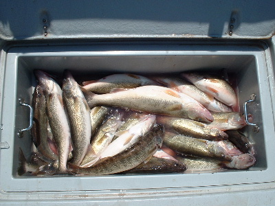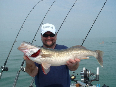 It was a good week. We had it all this past week; great weather, thunderstorms, terrible fog and again on the weekend, strong east, northeast winds. Yet through it all we simply slaughtered the Walleyes. In fact, aboard "The Trophy" we did a triple crown of sorts. On Tuesday we managed to still pull 36 Walleyes jigging on the beach west of Port Clinton. On Wednesday we trolled and managed a boat limit of 30 nice Walleyes, and by Saturday with the wind blowing fiercely, we went back to the bottom bouncers and knocked out 42 nice Walleyes. All three of these different styles of fishing resulted in limits of fish! |