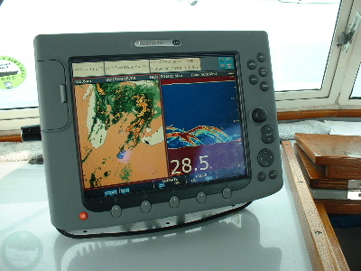Wednesday kept us on pins and needles as we fished just ahead of a strong line of thunderstorms moving across the western basin of Lake Erie. Using the Sirius weather data service on my Raymarine E-120 series display, I was able to track the thunderstorms on the real time Doppler radar and keep just ahead of the storms. With the split screen option I was even able to still keep a watch on the fish finder to make sure that I knew at what level the Walleyes were suspending. I've never been more confident with my decisions when it comes to weather than I am with the Raymarine Sirius weather information, all of this available while using it as a fish finder, chart plotter/radar display! |