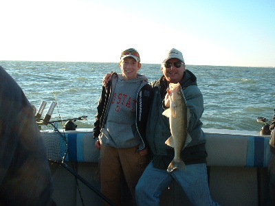 The reef fishing right now is super hot as well as ANY beachy area. We actually played a little game this past week where we tried to find an area where we couldn’t catch any. It could not be done! Every spot we tried produced these perfect eating sized fish. On our charters we have been jigging ¼ oz. Heddon Sonars. Most of the other boats are using jigs and minnows. It doesn’t seem to matter. The trollers are doing well on some of the early post spawn females. Best areas have been between “B” and “C” can. I’m not sure what has these fish so fired up. The water is really quite muddy. Past years when the water clarity was this bad we really struggled. This spring it seems just the opposite. We haven’t even started catching the zillions of 13 and 14-inch fish yet that are in the lake from the record setting hatch of 2003! These smaller fish will turn on when the water warms up a bit more and the Walleyes start hitting on nightcrawlers. The water temp off of Toledo Harbor stands at 48°. Awesome! Capt. Walt |