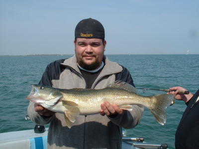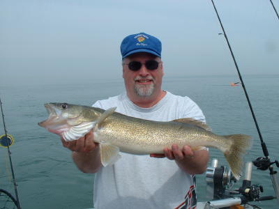 On Thursday, the wind ripped all day. I could not believe how hard the sustained gusts were. You could see the lake just muddy up in front of your eyes, and boy did it screw things up. We had major blows in April that lasted for days, and did little to slow down the fishing or even muddy things up for that matter. Well this one day blow took its’ toll. On Friday, the only clean water we could find was up by North Bass Island. We managed to capture a few Walleyes on bottom bouncers and night crawler harnesses but it was the toughest day I have had so far this year. The talk on the radio indicated that everybody was really struggling. The best boat catch that I heard reported was 9 fish. Fishing was even worse for the trollers. With the dirty water even the best of the best trolling captains only had one or two fish. A lot of guys even had “clean” ice at the end of the day. |