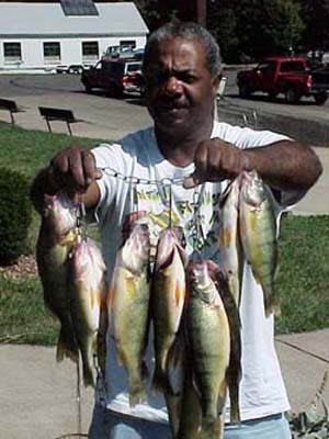 Kenneth Smith of Farrell with some of his limit of Jumbo Perch