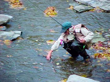 Young Angler carefully releasing a trophy steelhead