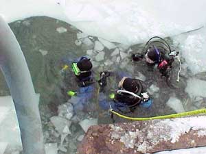 Local Dive Teams practicing for Ice Rescues on New Years Day