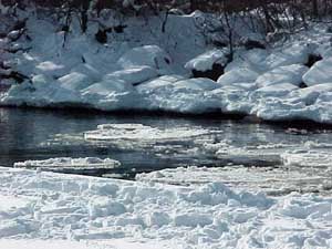 Four pictures conditions at Lower Walnut Creek (Monday 1/7/02)