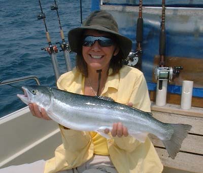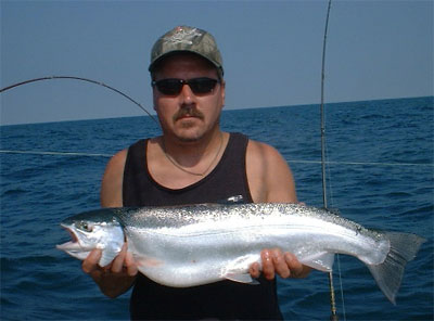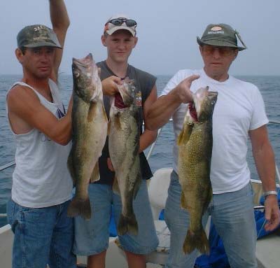 Tuesday evening right after the storm the shallow waters from Elk to Walnut were hot with action. The 30 foot level contained walleye and the smallmouth danced on the calm waters when hooked. The smallies have been found in the shallows fairly often. The evening was cut short with another nasty storm. Action on Wednesday: The guys on the boat caught a good many large walleye and lots of perch Perch: good north of trout run in 50 feet many boats limited today.