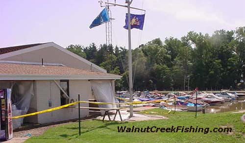 CONSTRUCTION: The North porches are repaved and the sidewalk is next. Please be patient and use the South door to enter the building until the sidewalk is completed. The lights for the parking area will be put in this fall.FISH FRY: Walnut Creeks Annual Fish Fry is being set up. The date is September 7, Sunday at noon. Everyone is welcome but MUST bring a dish and fresh fish. Sign-up sheets are in the lobby and on the south door of the office building. We still need people to volunteer to fry fish, to bring a couple folding tables, and lots of food and fish. Fish must be here by September 4 so it can be inspected and thawed. It will go on until the food is gone or until the building closes which ever comes first. FISHING: Walleye are in 30 ft out to the 70 ft depths. They are all around but they don't seem to be schooled up. There are a lot of little ones which is a good sign. Use downriggers 40 ft back and 48 ft down. Medium dipsys 200 ft back, and big dipsys 120 ft. Wormharnesses, Black and purple on cloudy days and green and yellow on sunny days. Watermelon works too on either day. You will need lots of worms though because there is a lot of sheephead, white bass, white perch, and gobies out there. Perch are in 52-54 ft and in 58-60 ft straight out of Walnut and also between Trout and Walnut. Most perch are being caught while trolling for walleye. Emerald shiners is the preferred bait. Just look for the pack and park on outside of it. They are on the bottom a lot of the time. Just bounce the bottom a couple times and slowly reel up until they hit. Sometimes you can't even feel them hit.