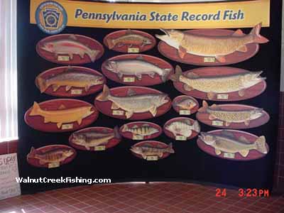 There are new improvements in the lobby at Walnut Creek. Ted Walke from Harrisburg brought up two corner displays for the public to see. One is photographed wood displays of all the state fish in actual size. It also has a plaque telling who caught it, where it was caught, and the size of the fish.