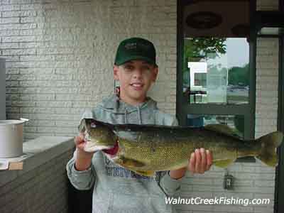 | WALLEYE: Twelve year old Elliott Haire of Millcreek came in with this 8 pound 12 ounce fish he caught out in the first trench using a watermelon worm harness on a Black and Purple Dipsey. |