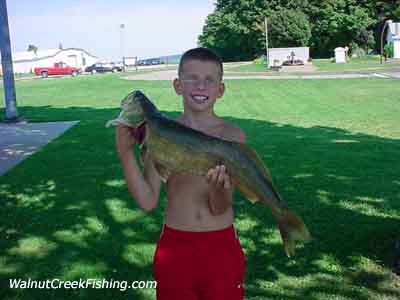 Ten year old Tyler Brown of Utica, PA came in with this nice 7 pound-4 ounce Walleye. He and his dad limited on them out in the first Trench in around |