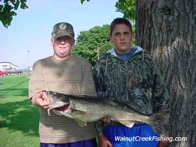| Fifteen year old, Branden Lindenberger and Tyler Brigham of Corry, PA caught this nice Walleye in 68 ft of water in the first Trench. They caught this one on a perch colored NK spoon. |