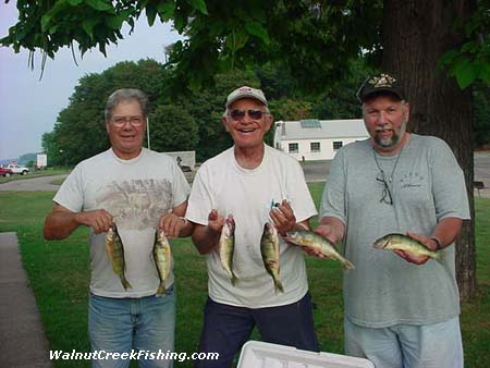 | PERCH: Jack Felix of Washington, Michael Soroka of Canonsburg, and Alan Laskosky of Muse, came in with their limit of Perch. They caught them straight out in 52 ft of water on minnows. |