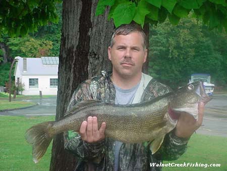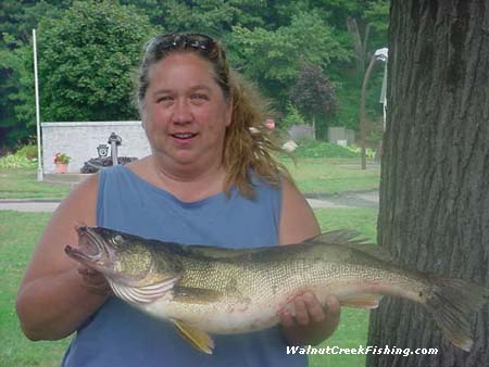 | Brian Wade of Beaver Falls brought this nice 12 pound 10 ounce Walleye in for Citation. He caught it out in 72 ft of water north of Walnut Creek on a worm harness. It was 31 ½ inches long and had a girth of 19 inches. The color for him was black and purple. That is all I have for this week. I didn't have any one bring in any Perch even though I know they were getting them. Most people are going out in 52-55 ft of water straight out of Walnut or just a little west. Also, I have heard quite a few people are getting some nice Perch off the Point. There are no reports of Steelhead except the couple some boaters are getting in the deep waters yet. It is still a little too early yet for them to come in. This weekend isn't going to be good for boating with the storm coming in. We have had 4-6 ft waves most of the week and then this weekend is no better. The Hurricane Ernesto is supposed to be coming through here on Sunday. Saturday is supposed to be gusting up to 35 knots and waves up to 10 ft. so it won't be boatable or fishable. Next week looks a little better with waves coming down on Monday and Tuesday to 2 ft or less. So, Happy Labor Day weekend. |
