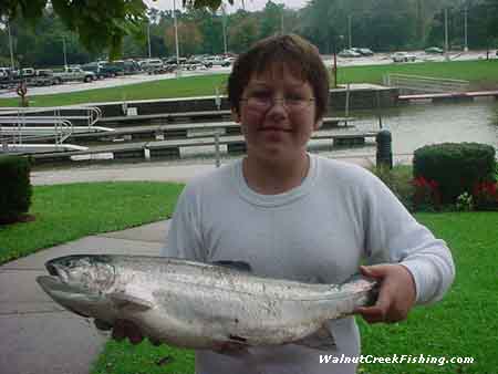 | The boats out in front of the Creeks are picking up a few here and there but nothing great. The fish don’t seem to be there in full force. The ones the boaters are getting are putting up a good fight and usually getting away. They are spooked. (That is what I heard someone say and I like to think that too.) There are a few up in the creek but not near what we usually get for a run so either the run isn’t here yet or we are in for a slow year of Steelhead fishing. I still think that the run isn’t here yet and in about a couple weeks it should be pretty good. (My theory) Now, I have not had any other fish come in for weighing. I believe that is because of the weather and not too many people are going out to get the Walleye or Perch. I know of a couple boats who got some but I didn’t get any pictures. There are still a couple of nice days coming. We still have Indian summer coming you know so don’t fret. The Perch are out in 42 – 62 ft of water. I have heard guys say they got them in both depths and in between. The weather for the next couple days looks dreary too. It is supposed to rain for the next couple days. The creek is up and muddy right now because we had rain last night (Wednesday) and today it rained most of the day off and on. The lake wasn’t really bad though. We had 2 ft waves up till around 3 PM and then they went to 3 ft. It usually takes 24-48 hours after a rain to settle down. The water temperature seems to linger around 65 degrees. Some days it’s 65 some days it 64 degrees but it keeps staying around there. It has been like that for a couple weeks now. Well, see you all at the nut. |