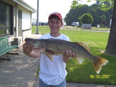 WALLEYE: Fifteen year old Ethan Bryan of Slippery Rock, PA brought this 6 pound 8 ounce Walleye in for Junior Angler Award. It was 27 inches long and had a girth of 14 ¾ inches. He caught it in 36 ft it out in 36 ft of water straight out of Walnut Creek on a Fire Tiger stick bait. |