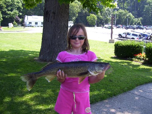 WALLEYE: Eleven year old Autumn Anderson came in with a nice Angler Award sized Walleye. It was 6 pounds 11 ounces and was 27 ½ inches long with a girth of 14 ½ inches. She caught it in 70 ft of water on a spoon (NK 28) 55 ft down on the riggers. The color was orange. |