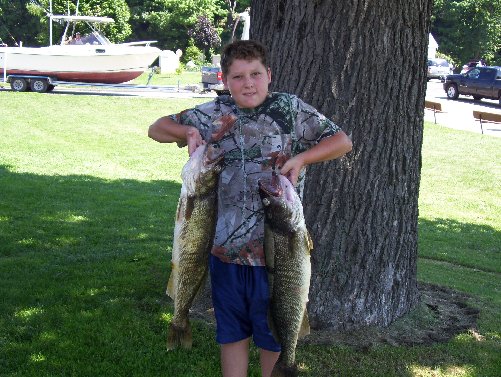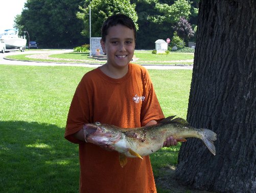 Eleven year old Daniel Schumaker from Pittsburgh brought in an 8 pound 10 ounce Walleye. It was 28 ¾ inches long and had a girth of 17 inches. He caught it in 70 ft of water West of Walnut Creek on a worm harness, Blueberry Muffin. |