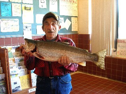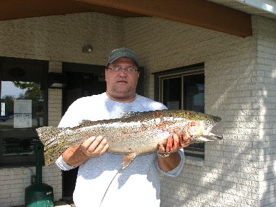 STEELHEAD: Seventy year old Freeman Rathfon of Mifflinburg, PA came in with this nice 10 pound Steelhead. It was 30 inches long and had a girth of 17 inches. He caught it North of Manchester Falls on Walnut Creek on Salmon egg sack. He said he has been coming up here for a long time and finally got an Angler Award for one. He was very excited. |
