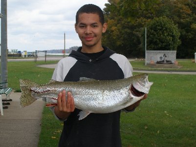 Nineteen year old Maurice Booker Jr. came up with his dad from New Kensington. They came in yesterday and didn’t quite make the size for an Angler Award. Today he came back in and showed me this nice 11 pound 6 ounce female Steelhead. She was 29 ½ inches long and had a girth of 19 ¼ inches. Maurice caught her at the Stop Sign hole in Walnut Creek on a yellow jig. Dad is really proud. The rain that we got on Tuesday and then again yesterday seemed to bring some more fish in. They almost are up to Rt. 20 on Walnut and to the Legion Hole on Elk Creek. Down here at the mouth the people seem to be having loads of fun catching and releasing. The Creek is still low but not as low as it was previously. The lake is supposed to be pretty rough for the next couple days so there are not and probably won’t be any boats going out. I had five go out earlier today but they were all back in by 12 noon. Please, if you are going to fish the Channel Wall, Please bring in your lines for the boaters. It can do hundreds of dollars worth of damage to the boats let alone be a danger to them out on the water if they get line wrapped on their props. MARINA OPEN: NOVEMBER 8 at 2 PM TENTATIVELY. Don’t forget the marina will be open on November 8, at 2 PM for fishing TENTATIVELY. That means that if the docks are not all out there will be no fishing. These are new docks and it will take longer to get them out then it did the old ones. So be courteous and watch for the signs in the building or call here to find out if it is open. I will blow the whistle at 2 PM if the docks are out and I also will take a picture of the first fish and put it on the web site. |