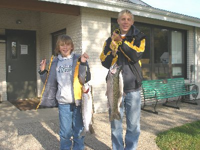STEELHEAD: Eleven year old Connor Nace and his brother fifteen year old Austin Nace came up from Littlestown, Pa to catch some Steelhead. They caught two fish each. Connor’s total fish weight was 9 ½ pounds for both and Austin’s two fish total weight was 10 ½ pounds. They caught them in Walnut Creek in the channel on Skein and minnows. |