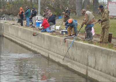 First fish brought in was from Lou Fritch of Cheswick, PA. He and Dick Mosbacher were close in their catches but he netted his before Dick could. He was the second one to catch a fish but the first one to net it and bring it to shore. The water in the creek is up and running. The fish are on their way to the Millcreek Mall. The snow we had on Tuesday and the rain that has been coming down slowly has made the creeks rise so the fish can finally come in and do what they have to do. The lake is supposed to be nice tomorrow and then it is supposed to kick up. PUBLIC MEETING There is a meeting on this Tuesday, November 13, 2007 at the Tom Ridge Center on Peninsula Drive from 6:00 pm to 8:00 pm. It is about the renovation and expansion of Walnut Creek Access. It is given by the Urban Engineers in cooperation with the Pennsylvania Fish and Boat Commission. Please come so you will know what is going on. It is open to the public so everyone please come. |