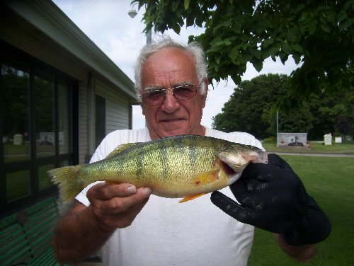 YELLOW PERCH: James O’neil of Kennerdell, PA is going to be 73 years young tomorrow. He brought in this Perch for an Angler Award. It was 1 pound 8 ounces, 13 ¾ inches long and had a girth of 11 inches. He caught it in 62 ft of water straight off Elk Creek on an Emerald Shiner. WEATHER: The weather for the next couple days 8/8 thru 8/10 is: WALNUT CREEK MARINA: Do to some vandalism in the rest rooms, the outside restroom doors are kept closed. Please use the lobby doors when the office building is open. There are Porta-Johns available for your convenience if you need to use the rest rooms when the building is not open between shifts. There are two at the top of the Launch ramp and two in the grove of trees off to the South side of the marina. Also, do to the increase in the cost of Ice; we had to increase our price. Ice can now be bought for $1.60 for a seven pound bag here at the office. |