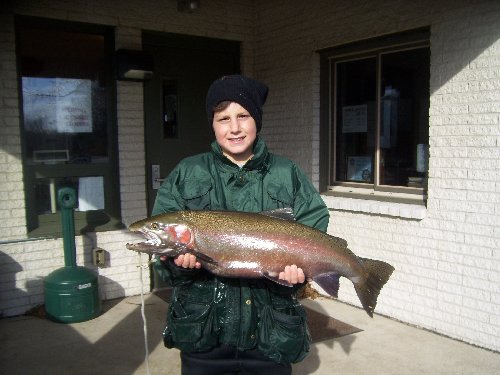 STEELHEAD: Eleven year old Jordan Preteroti of Muse, PA brought in this beauty. It was 10 pounds – 11 ounces and was 30 inches long with a 17 inch girth. He caught it in Walnut Creek on a maggot. |