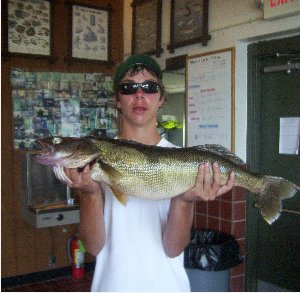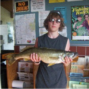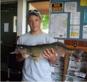 | WALLEYE: Fourteen year old Dan Wanker of Pittsburgh brought in a 10 pound 1 ounce Walleye for Junior Angler Award. It was 30 inches long and had a girth of 17 ½ inches. He caught it in 70 ft of water straight out of Walnut Creek using a Green Flash, Reef Runner. |
