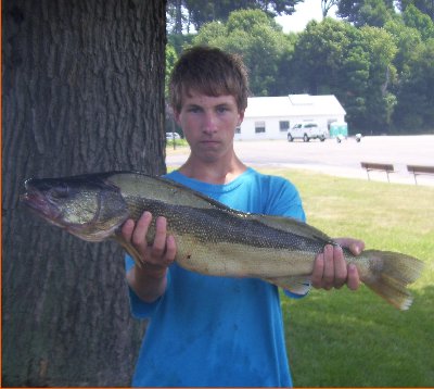 | WALLEYE: Thirteen year old Connor Pritts of Latrobe, PA came in with 6 pound 13 ounce Walleye for Angler Award. It was 27 ¼ inches long and had a girth of 15 inches. He caught it out in 60 ft of water straight off the Clay Banks or Trout Run. He was using a Copper/Watermelon harness. |