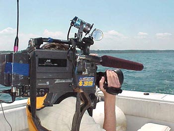 Channel 35 Sports Reporter Tom Camillo filming a patrol of the Ohio/ Pa Border