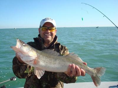 Sloooooooooooow fishing !  Last weekend's very bad weather took a heavy toll on our dream spring Walleye fishing that we've all been experiencing thus far here in the western basin.  After getting back on the water Monday after the big blow, clean water was almost non existent.  The only glimmer of hope that we had was to the extreme N.E.of Port Clinton well above Kelly's Island.  Even up there it was not great but we managed to troll up a handful of nice fish.  Some did worst. Hardly anybody else did much better.  Tough fishing to say the least.
