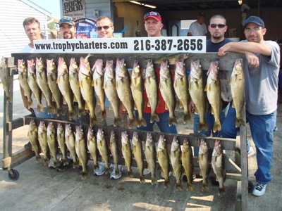 So we are now entering the second half of August already. We used to have full fledged daylight at 5:30am. Now a strange darkness lingers on till almost 6:30. Summer is winding down. People are talking about kids going back to school and the new football season. I have mixed emotions about it all. After the year that I have had this summer couldn't have ended soon enough. Now that it actually is and the Walleye fishing has gotten pretty decent it saddens me. I am not really ready for the fall season that is knocking on the door. We have been cheated out of summer this year and the fact that it is seemingly almost over any which way saddens me. My only hope is that the Walleye fishing remains strong the remainder of what I have booked which is less then a month now before I make the switch to the Jumbo Perch fishing to round out our season. Which reminds me to remind you of this upcoming last chance season and a last chance to stock the freezer with those tasty yellow Perch fillets. We have lots of days to choose from for the Perch trips and we actually have a few open days left fore a last chance Walleye trip aboard "The Trophy". As always, give me a call at 216-387-2656. I'll be glad to hook you up ! Capt. Walt
