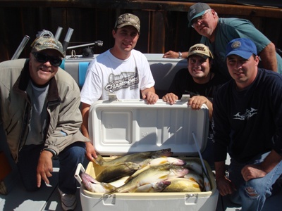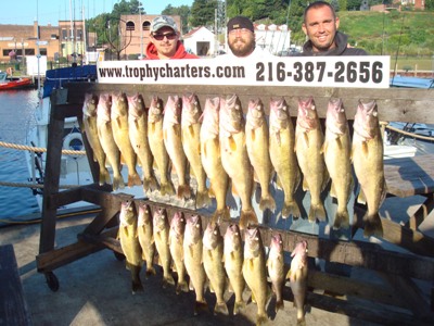 Great fishing !  The weather, not so much. We finished up our last full week of Walleye fishing for this August in grand style and the fishing could not have been any better. The weather on the other hand started out OK early on in the week but got worst each day as the week wore on. Thursday and Friday the lake was very rough but we managed to fish and do extremely well. Saturday was very borderline bad and while very few boats left the harbor and even fewer lasted very long after venturing out there we managed to get most of our day in although the fishing was slower for us under the trying conditions.  I seemed to have the right crew for the day though and nobody got sick and seemingly enjoyed the opportunity to go rather then be turned away at the dock. We still came in with a very nice box full of Walleyes that we truly earned that day.  Sunday was a complete wash out with waves forecast at 5 to 7 foot and the way it blew Sunday it was probably even worst. I made the right call and spared my group the wasted trip up. Chalk another lost day up on the long list of lost trips that will not be made up this year. Such is the nature of this business and after all these years it still frustrates me when it happens.