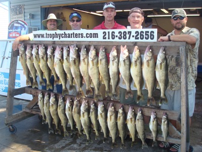 And through it all, the Walleye fishing off shore of Ashtabula harbor continues to be as good as it could possibly be. Just fabulous ! Barring heavy sea conditions which hamper us now and again, limits have been very common place aboard "The Trophy" this summer and most all the other boats out there. The fishing has been excellent anywhere from right around 65 foot and north clear to the Canadian line and anywhere from Geneva clear to the OH - PA line. Simply amazing the amount of Walleyes that are in this area right now !