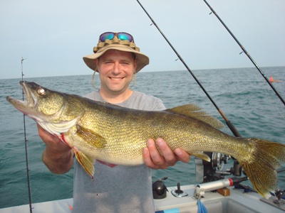 It looks like today's unexpected wind is going to be with us through Monday anyway and then things might get more pleasant again.  If we ever needed calm seas, it's right now this time of year.  The schools of fish are not that very big yet and if you can't circle the wagons and work these little pockets tightly, well the production goes way down.  That's what happened to us today after a big day on Saturday where the lake was flat and I was able to work a little half mile spot.  You can't spin tight circles in heavy seas. Perhaps when more migrating Walleyes move down the lake to join the existing fish that are already in the area we can get back to making longer slides. One can only hope.  I am still thankful for the fishing that we are experiencing though and know it could be so much worst and I am certainly in awe over the size so far this summer here out of Ashtabula.   We'll see what this new week brings !    Capt. Walt   *It is imperative that we get out early.  These fish most of the time feed like crazy right at dawn and then really shut down when the sun gets higher.  I am at the boat at 5:00am everyday and we need to be off the dock by 5:30am at the VERY LATEST !  For all of my upcoming trips, I urge you to be there as early as possible so we don't miss out on this opportunity.  Also there are no fishing license sales at the marina again this summer so you guys have to get them on your own ahead of time.  You can do so online or the local K-Mart or Wal-Mart here in Ashtabula which both are open 24 hours a day.
