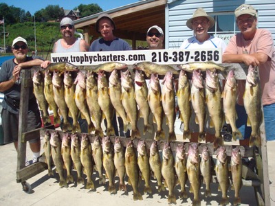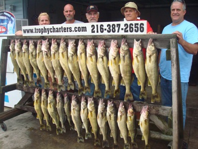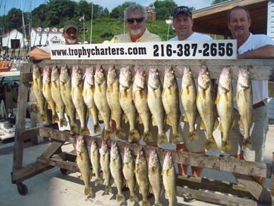 So now it's August. The real dog days of summer.  Hot, humid and hazy.  Just as summer should be.  And the Walleye fishing is really great !   Life is good at the moment at least for us out of the port of Ashtabula and although the fuel bills are ugly, the results are certainly worth the added effort.  Thanks again to all of you kicking in the extra tip dollars at the end of your trip day which allows me to do my thing day after day on your behalf without worrying about being forced to charge any kind of fuel sur-charges or letting fuel considerations be the  determining factor as to how far out or how fast we are going to go to get to the fish no matter how far out they are.  We have not increased rates in years and it is for this exact reason why.  You guys are the best !   Let's hope these fish slide back in south a few more miles so we can spend this tip money the way it was really intended to be spent, on COCKTAILS !  Lol !!!   Another new report will be back up again next weekend.  Stay tuned !      Capt. Walt   *It is imperative that we get out early.  These fish most of the time feed like crazy right at dawn and then really shut down when the sun gets higher.  I am at the boat at 5:00am everyday and we need to be off the dock by 5:30am at the VERY LATEST !  For all of my upcoming trips, I urge you to be there as early as possible so we don't miss out on this opportunity.  Also there are no fishing license sales at the marina again this summer so you guys have to get them on your own ahead of time.  You can do so online or the local K-Mart or Wal-Mart here in Ashtabula which both are open 24 hours a day.