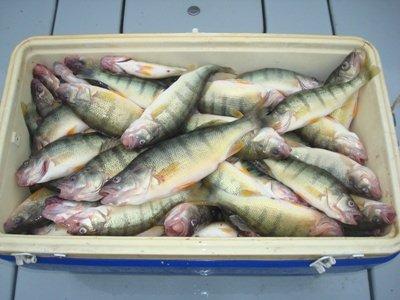 Sunday officially finally kicked off the beginning of the fall Perch season for me and "The Trophy" and we did them up big on our first attempt. Yesterday on my way north east to go Walleye fishing, I marked heavily what I thought looked like a incredible amount of Perch in about 63 foot of water. Knowing that I had a Perch trip today, I marked the spot on my chart plotter to investigate a bit closer today. From the moment the anchor grabbed, it was game on for us ! What I thought was some Perch really was the Mother Load of Perch ! Doubles and triples ruled the day ( or should I say, morning ! lol ! ) There was 6 of us onboard and it seemed like in no time, we had our 180 nice sized Perch in the cooler and heading back to port. Awesome, awesome, awesome ! Nothing but big smiles from everyone !!!