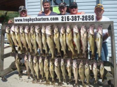 So Saturday morning rolls around and I’m like, did yesterday even really happen ?  The lake at 4:30am is flatter then flat.  And we go out and just can not keep a line in the water!   Absolutely nothing changed and if anything, things just got plain better !   I don’t remember a trip where we had as many multiple hook ups as we did on Saturday.  I think three different times we had five fish  on all at the same time !  And with my  superior coaching and a little bit ( actually a whole lot ! lol ) of luck, I don’t think that we lost even a single fish or tangled a single line out of all of that!   Pretty amazing stuff !  What a great day of fishing !   And again, I don’t see anything changing any time soon.  There are just too many fish out there right now and they are all mighty HUNGRY !  And “The Trophy” is here to serve up whatever they want to eat!   Stay tuned...                       Capt. Walt *I am reminding all of my upcoming trips that we REALLY need to get off of the dock by 5:00am. These central basin big Walleyes in this real clear water are really squirrely and 90% of the time they feed like crazy right at dawn and then it drops off dramatically with each passing hour. WE DO NOT WANT TO MISS OUT ON THIS OPPORTUNITY if you want to catch a nice load ! It’s really just that simple. Also please MAKE SURE that you have your fishing license ahead of time before arriving in the morning. There are no provisions for licenses at the marina. Any questions, call my mobile # 216-387-2656