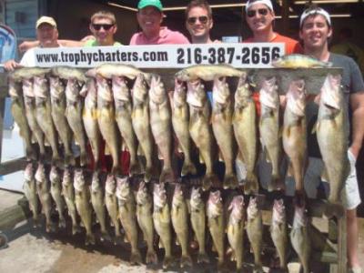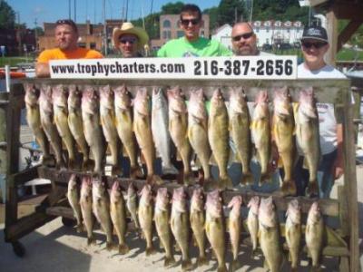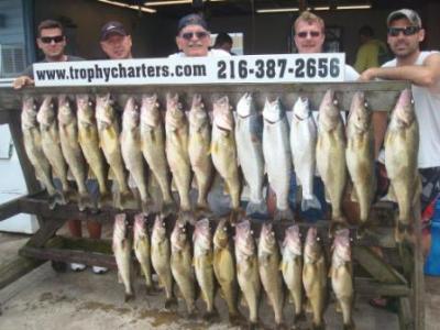 So the lake had flipped over and the Walleyes were in a bit of disarray for a few days.  Very interesting and hopefully very short lived.  By weeks end however things were returning back to fabulous and on Friday we had a 39 fish day for my six charter guests that particular day.  I rarely get 6 guys anymore nor do I want that many guys on the boat really but somehow, someway we went well and we went on to have the best day of the year number wise aboard “The Trophy”.  Very strange after a few days of terribly struggling just a couple of days before. Saturday was a burn as well with us capturing 30 Walleyes before 10:00 a.m.  Same results on Sunday.  It was on fire and done early!   I guess I have a new excuse to use now anyway.  I will add it to my long list already of why the stupid fish aren’t biting. “The lake has turned over”  I will add that one right below the “super stupid moon” phenomenon on my ever growing list!  lol !  Anyway, this weeks 10 day forecast is calling for almost no rain right on through the extended period and temperature's soaring into the 90’s  by early in the week !  We should get our thermocline back in a big time hurry and the rest of summer should be back to just simply peachy.  Should be,...  right ?   Stay tuned !        Capt. Walt       *We are entering this part of the season now where it is imperative that we get out very early in the morning. With the very clear water out there, we usually get a strong morning bite before the sun gets up too high and the action drops off significantly. WE DO NOT WANT TO MISS OUT ON THIS OPPORTUNITY ! Until further notice, we are now departing from the dock everyday at 5am sharp. Please if you have a trip scheduled, be here early and be ready to roll at such time ! Also, MAKE SURE YOU HAVE YOUR FISHING LICENSE ahead of time. There are no license sales at the marina. If you are getting just a 1 day license, make sure to get the 1 day “charter license” which only goes into effect if you actually get out and use it. Links on my website for online sales. Any questions, call me.