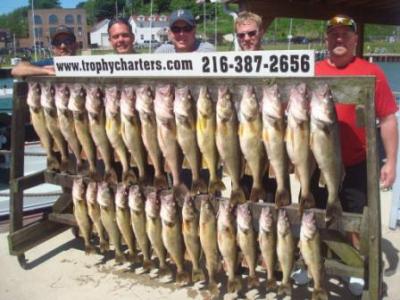 So in last weeks report I threw out a open date that I was looking to fill for next Sunday.  It has since been taken.  Thank you for all the phone calls.  Alright, the weather last week was picture perfect minus that one rough day.  This upcoming week looks to be equally tranquil.  In all of the years of my chartering that I have done,  I’ve found June to be traditionally the calmest month up here on the big lake.  Many times almost too calm with glass like conditions, bringing out the bugs and shutting down the Walleye bite as the sun gets higher.  I guess I’ll take the bugs and hot flat lake over the very rough, but sometimes I wonder.  So that’s it for our second week back.  Thus far it’s been real good fishing, mostly good weather, no real bad bug days (yet) and the only downer has been those pesky little White Bass that have been driving me crazy.  But hey, if it weren't for them right now, what else would I have to complain about?  Stay tuned...       Capt. Walt        * It is imperative to be setting lines with the very first hint of daylight.  And with that said, I would like to have all of my upcoming trips that might be reading this report to take note and PLEASE be at the dock between 4:30 and 5:00am at the VERY latest.  Fishing is the very best the first few hours of daylight and we DO NOT want to miss out on that opportunity!  Also, please remember that there are no fishing license sales at the marina and that those must be secured else where ahead of time.  Any questions, call me 216-387-2656.