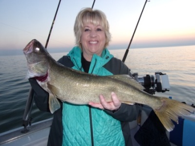 Techniques are typical early season shallow water trolling.  Aboard “The Trophy” we’ve been pulling our big planer boards and loading them up with a spread of Tru Trip Jet Divers and mostly shallow lipped stick baits.  Nothing new here.  Marking fish deep but catching the stealth higher fish that you rarely mark as the boat trolls over head and spooks the fish off to one side or the other.  I have also this spring bought into the hype over the deep diving “Bandit” crank baits that seems to be all the rage anymore.  These cranks pulled off the boards with just straight up braid is really pleasant to work with but I am yet to be convinced that it is more productive then the old Jet program that we’ve pulled for so many years now.  We’ll see.  So far I would say of the around 20 or so big Walleyes that we’ve captured, its been about 50/50 with the Bandits verses the Jets.  We’ll see what this week brings.  I have a heavy schedule facing me right off the bat so it shouldn’t take long for me to form a strong opinion!  So it’s game on.  Check back next week!   Capt. Walt Trophy Charters