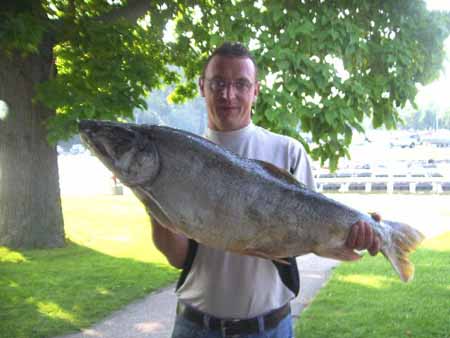 LAKE TROUT: John Starkweather of Jamestown, NY caught this huge almost State Record Lake Trout. He caught it on Thursday night and brought it down Saturday for verification. He caught it out in 115 ft of water off the mountain in Northeast, PA. It was 27 lbs. 10 oz, was 38 ½ inches long and had a girth of 27 inches. He caught it on a spoon that had Orange/Chartreuse stripes for color.